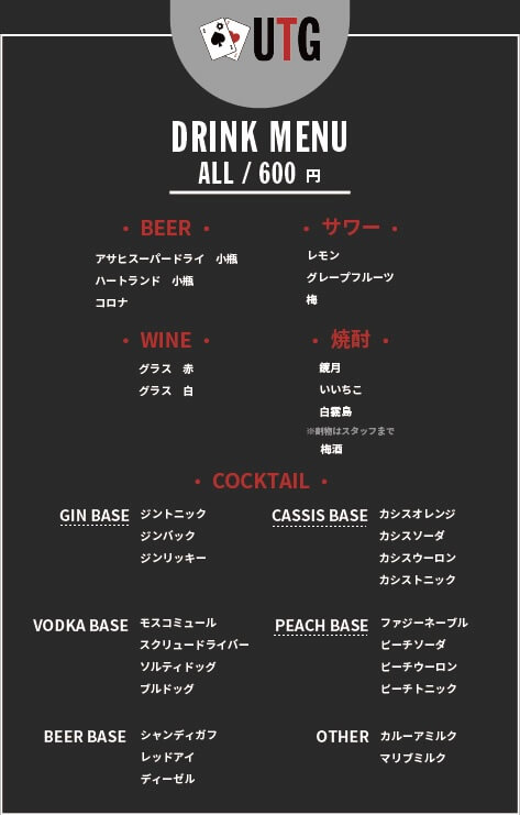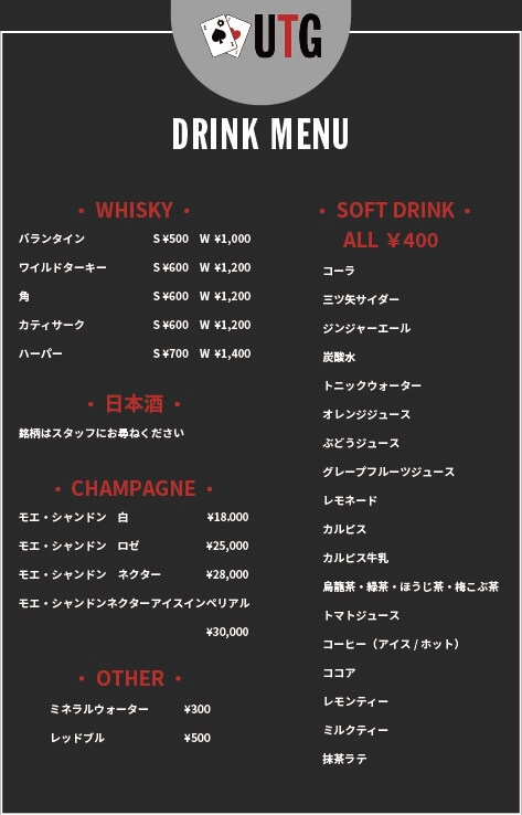 ポーカー カジノ 長野県 松本市 Drink Menu
